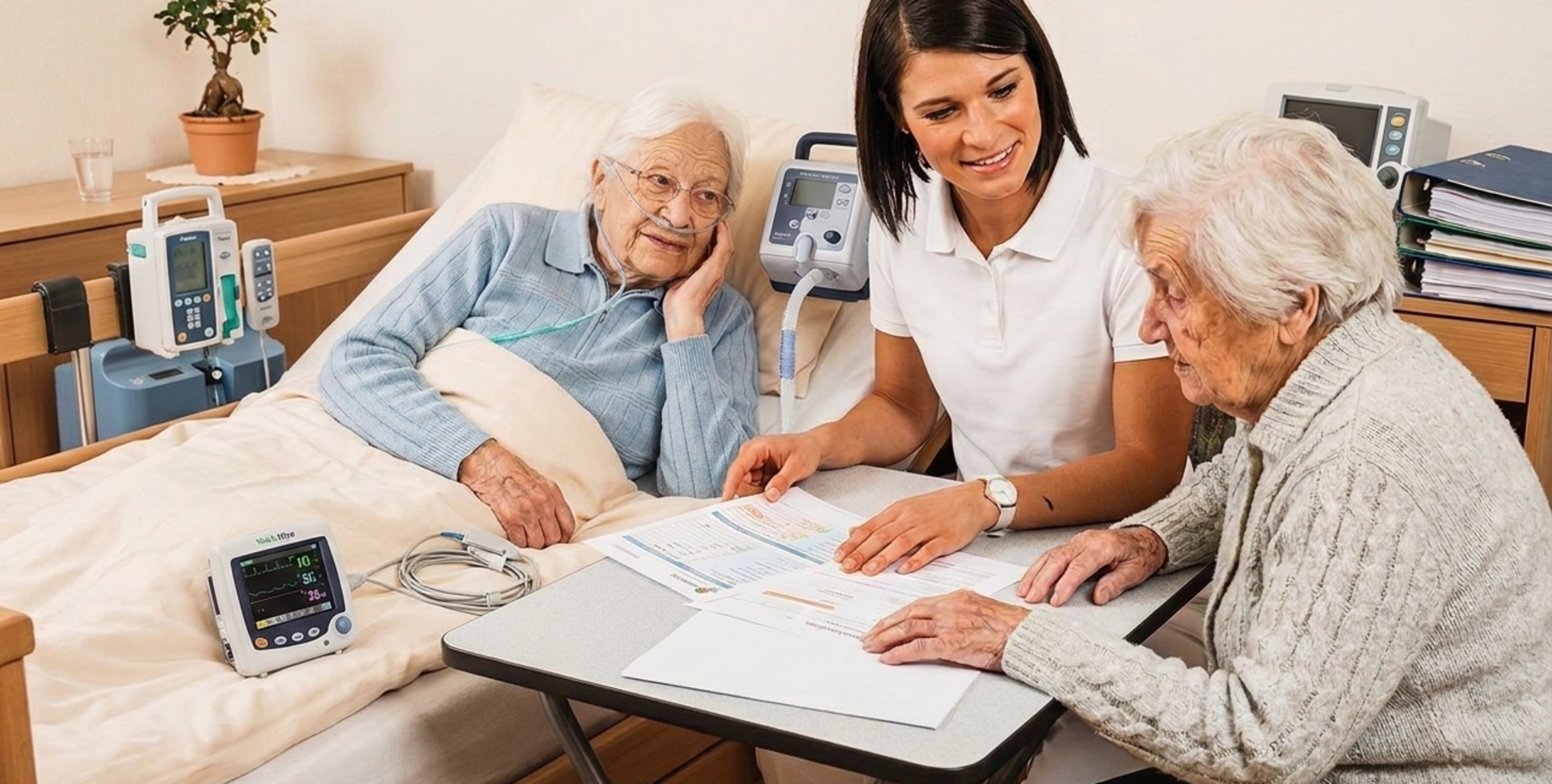 Informationen zur 1:1-Versorgung, zur Zusammenarbeit mit Kliniken und zu den Voraussetzungen für die Versorgung im häuslichen Umfeld.